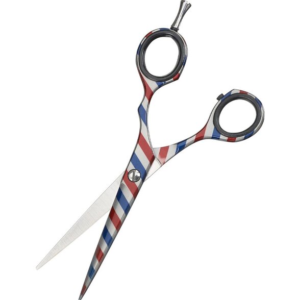 Tyto elegantní holičské Barber kadeřnické nůžky s offsetovou rukojetí a atraktivním holičským pruhov...
