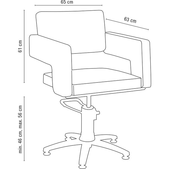 Kadeřnická židle s hydraulikou a křížovou podstavou. Nastavitelná výška sedadla 46-56cm.