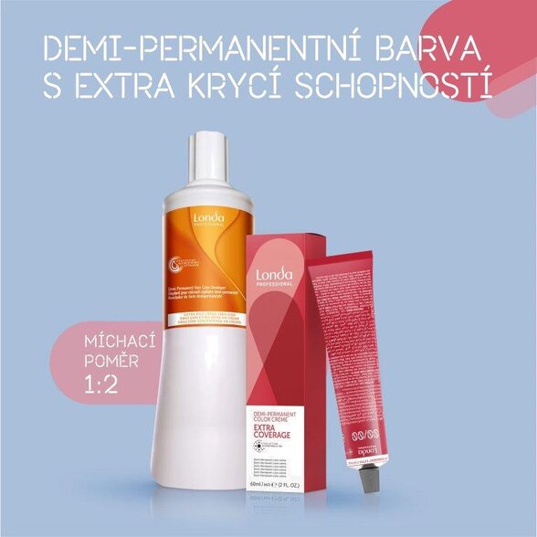 Míchací poměr: Kombinujte vždy demi-permanentní barvu Extra Coverage Color Londa Professional s vyvíjecí emulzí 4%.