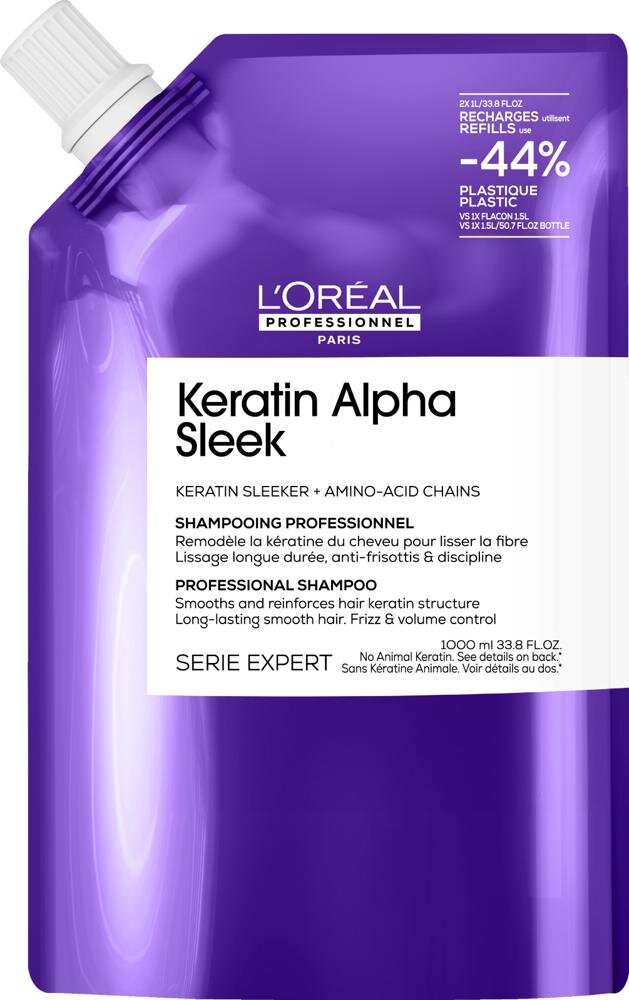 L'Oréal Professionnel Keratin Alpha Sleek uhlazující šampon na krepaté vlasy 1000ml, náplň