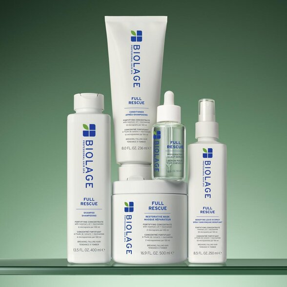 Řešíte nadměrné vypadávání vlasů? Řada Biolage Full Rescue přináší profesionální řešení pro ženy i muže, které trápí řídké a oslabéné vlasy. Spojuje sílu vědy a přírody – díky niacinamidu (vitamin B3) a rozmarýnovému oleji pomáhá zklidnit a posílit pokožku hlavy, podporuje růst vlasů, zlepšuje hustotu i celkový vzhled vlasů.