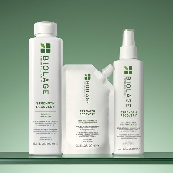 Pro dosažení maximálního účinku používejte spolu se šamponem a kondicionérem z řady Matrix Biolage Strength Recovery – pro kompletní obnovu vlasů od kořínků až po konečky.