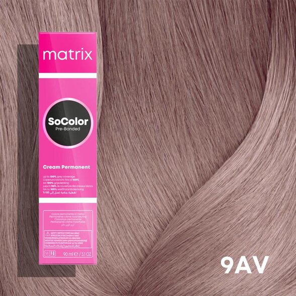 Matrix SoColor 9AV velmi světlá popelavě fialová blond barva na vlasy pro dokonalé výsledky v kadeřnických salonech