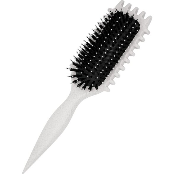 • Kombinace štětin z kance a nylonu – kančí štětiny přenášejí přírodní oleje po celé délce vlasů a zvyšují lesk, nylonové štětina proniká i do hustších pramenů, zabraňuje zamotání a dodává vlasům hebkost. Tato kombinace je ideální pro zdravé, pružné a krásně definované kadeře.