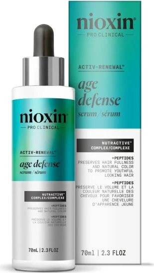 Profesionální bezoplachové sérum na pokožku hlavy, které cíleně reaguje na viditelné i méně viditelné projevy stárnutí vlasové pokožky. Nioxin Age Defense je speciálně vyvinuté jako každodenní sérum na vlasovou pokožku, které podporuje vitalitu vlasových kořínků, zlepšuje kondici pokožky hlavy a pomáhá zachovat mladistvější vzhled vlasů.
