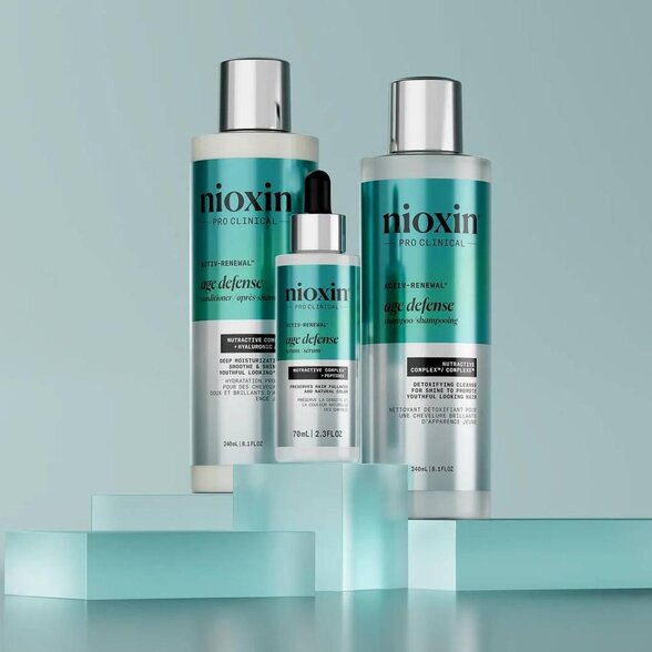 Nioxin Age Defense hydratační kondicionér na suché a stárnoucí vlasy představuje moderní přístup k anti-age péči o vlasy. Kombinuje vědecky podložené aktivní látky s profesionální kvalitou značky Nioxin a přináší řešení pro vlasy, které potřebují víc než jen běžnou hydrataci.