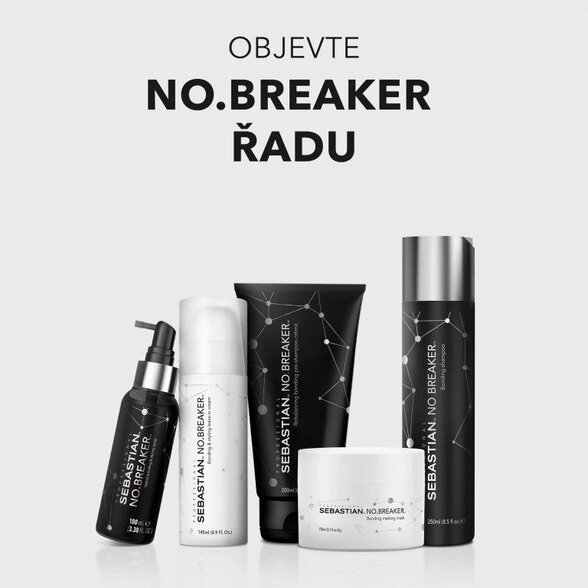 O systému No.Breaker: Po velkolepém úspěchu No.Breaker 2v1 spreje od Sebastian Professional přichází jeho celá pečující řada No.Breaker System založená na komplexu kyseliny jablečné, vyživujících složek a stylingových polymerů, díky kterým se obnovují a vytvářejí vazby v poškozených vlasech. Péče zahrnuje vše, co namáhané vlasy po chemickém ošetření, tepelných úprav a mechanické zátěže potřebují - ochranný krém před šamponováním, šetrný šampon, vyživující maska a bezoplachový stylingový krém.
