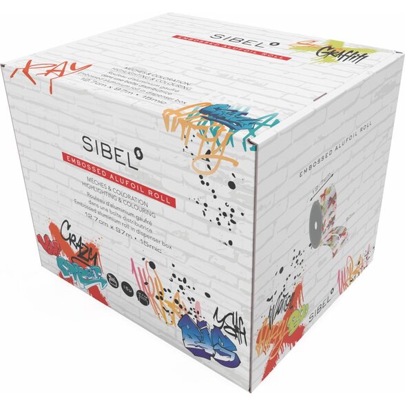 SIBEL Graffiti embosovaná melírovací fólie 12,7 cm × 97 m (15 µm) je ideálním pomocníkem pro každého, kdo hledá spolehlivou, odolnou a snadno použitelnou fólii na melíry, balayage či jiné techniky barvení. Spojení praktické embosované struktury, atraktivního graffiti designu a dispenzního balení dělá z tohoto produktu must-have pomůcku pro každý moderní salon.