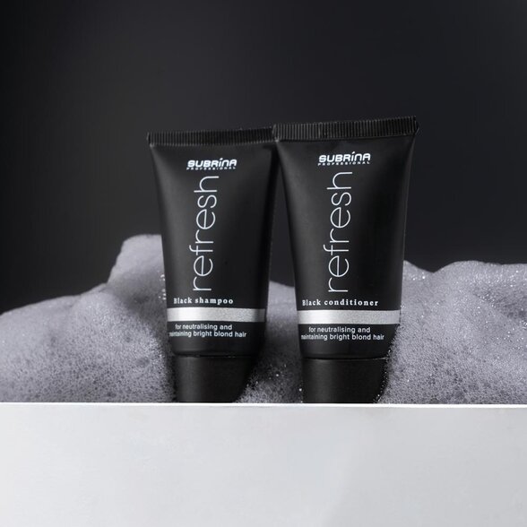 Po každém umytí tónovacím šamponem je důležité vlasům dopřát výživu a ochranu, aby si udržely lesk a pružnost. Subrina Professional Refresh Black Conditioner je navržen jako ideální následný krok po použití Subrina Refresh black šamponu – společně vytvářejí dokonalý pár pro udržení chladného blond odstínu bez nežádoucích teplých reflexů.
