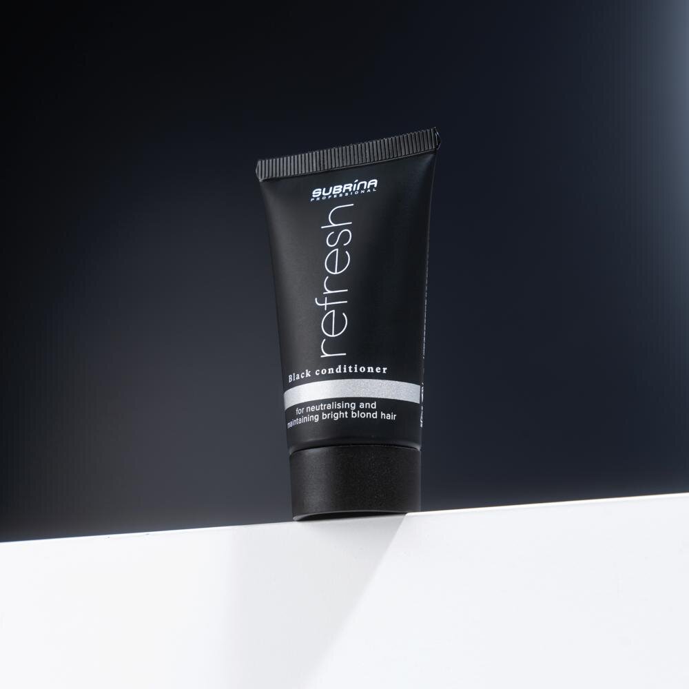 Dokonalý blond odstín si zaslouží víc než jen šampon. Proto značka Subrina Professional vytvořila jedinečný Refresh Black černý kondicionér na blond vlasy, který doplňuje účinek tónovacího šamponu a zároveň poskytuje intenzivní výživu, hebkost a lesk. Tento profesionální kondicioner na blond a šedé vlasy je navržen tak, aby udržoval chladný, jiskřivý tón a zároveň obnovoval pružnost a zdraví zesvětlených nebo melírovaných vlasů.