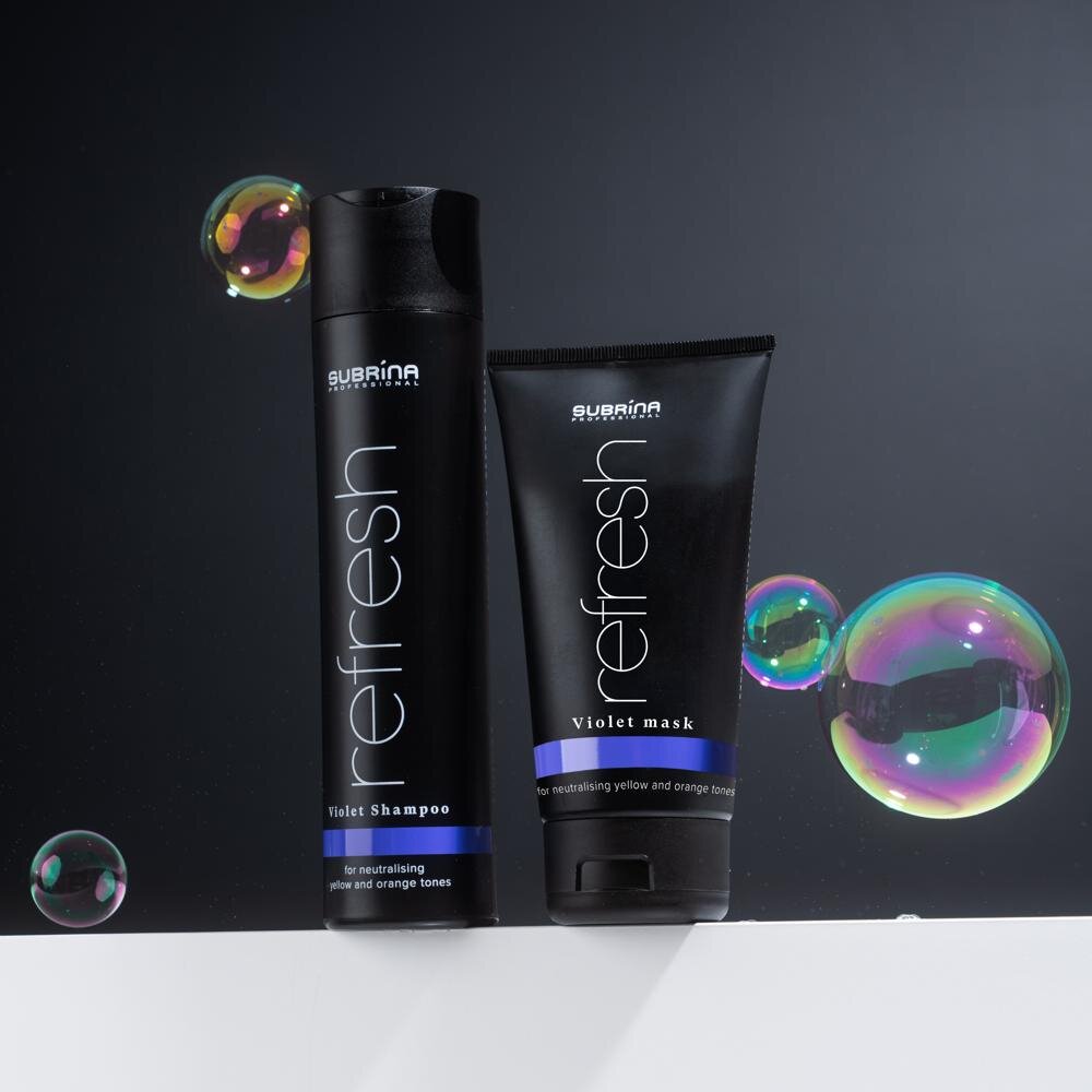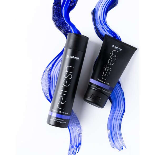 Pro ještě výraznější a dlouhodobější výsledek doporučujeme kombinovat fialový šampon na vlasy s Violet maskou z řady Subrina Professional Refresh Violet, která prohlubuje tónovací efekt a zároveň poskytuje intenzivní výživu vlasům. Tato kombinace je ideální zejména pro blond, melírované nebo šedé vlasy, které potřebují nejen neutralizaci, ale i regeneraci.