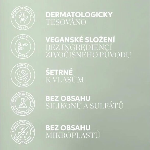 - Veganské složení obsahuje až 92% látek přírodního původu a neobsahuje silikony, sulfáty ani parabeny