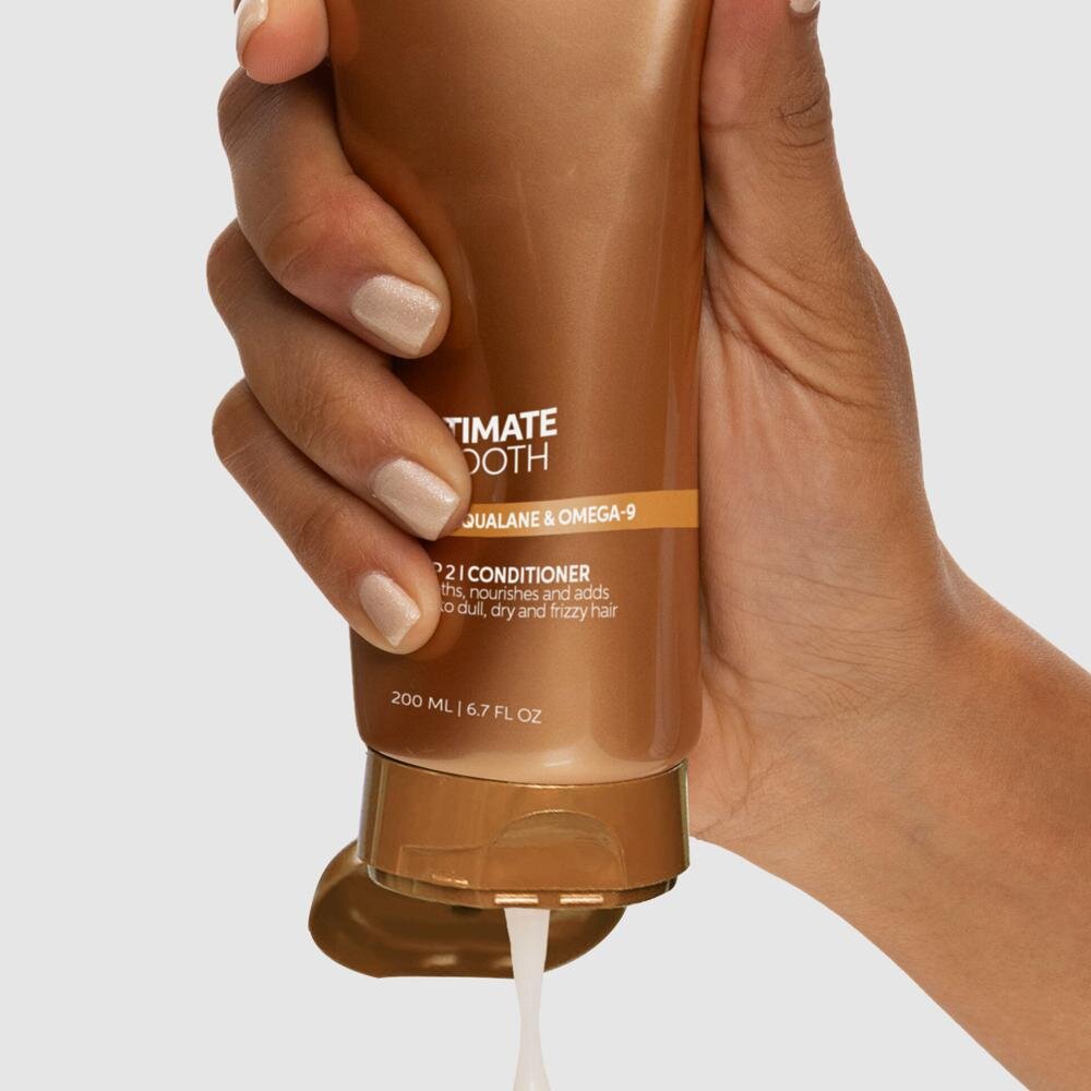 Jak aplikovat: Naneste kondicionér Ultimate Smooth na vlhké vlasy umyté Ultimate Smooth šamponem, přičemž se zaměřte zejména na délky a konečky. Nechte působit 30 sekund až 3 minuty a poté důkladně opláchněte. Užijte si okamžitý pocit svěžesti a dlouhotrvající krásu vašich vlasů! Pro extra intenzivní výživu můžete místo kondicionéru použít Ultimate Smooth masku a na závěr rutiny aplikovat Ultimate Smooth olejové sérum.