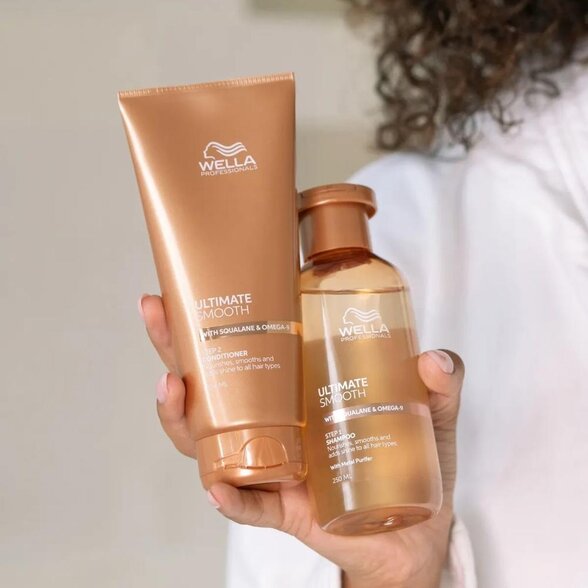 Dopřejte svým vlasům luxusní péči s ULTIMATE SMOOTH Šamponem, který byl speciálně vyvinut pro suché, matné a poškozené vlasy náchylné k lámání. Díky patentované technologii s obsahem skvalanu a omega-9 poskytuje hlubokou výživu od kořínků až po konečky, obnovuje vlasová vlákna a pomáhá vlasům získat zpět jejich přirozený lesk a hebkost.